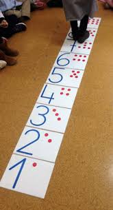Recta numèrica gegant a terra, i podeu anar treballant la identificació dels números, el que anirà abans o després i fer-ho saltant!!!